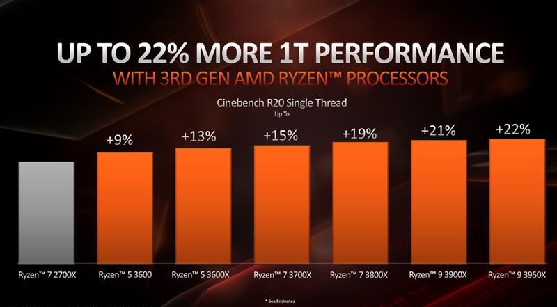 銳龍9 3950X的最高加速頻率達(dá)到了4.7GHz,是所有銳龍?zhí)幚砥髦凶罡叩模鄳?yīng)而來的就是他的單線程性能的提升。與上一代的銳龍7 2700X相比,銳龍9 3900X的單核性能提升了22%之多,比銳龍7 3800X則是提升了3%,比銳龍9 3900X也要高出1%。