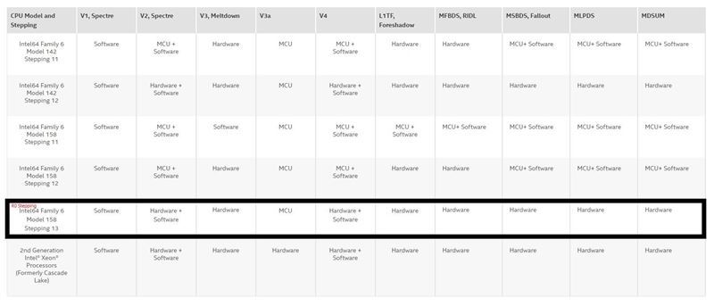 一方面,新步進強化了安全防護,可以軟硬件結合防御Spectre v2/v4,硬件防御MSBDS、Fallout、MLPDS、MDSUM等安全漏洞,無需再更新微代碼和BIOS,也不會造成性能損失。