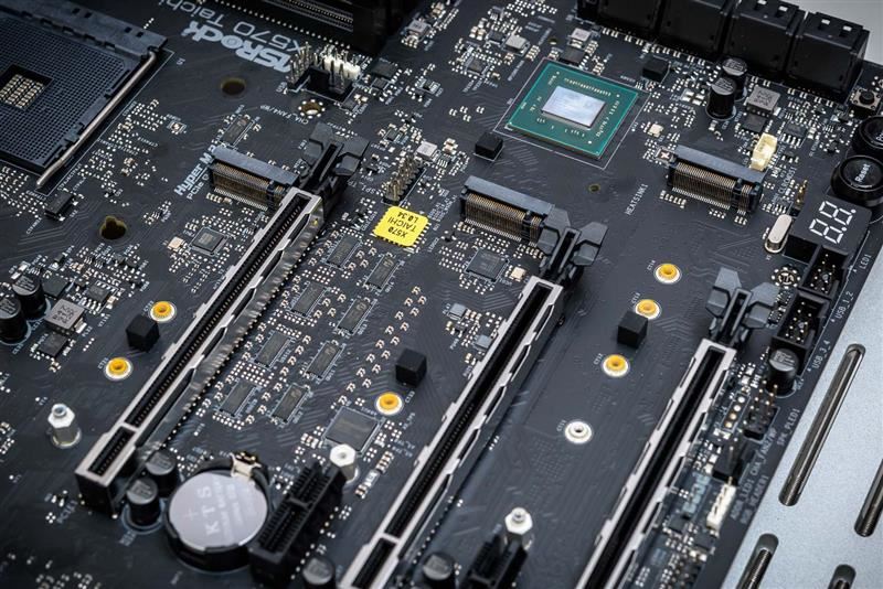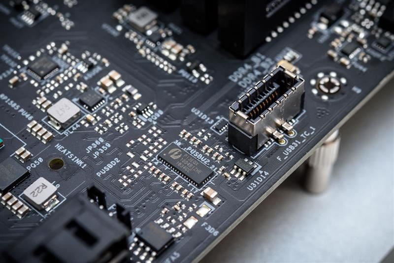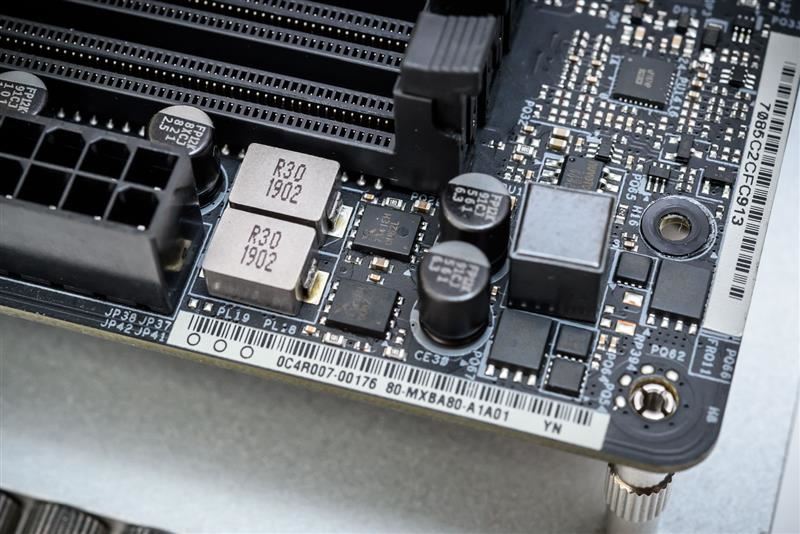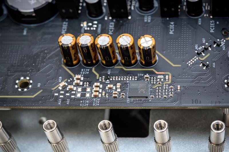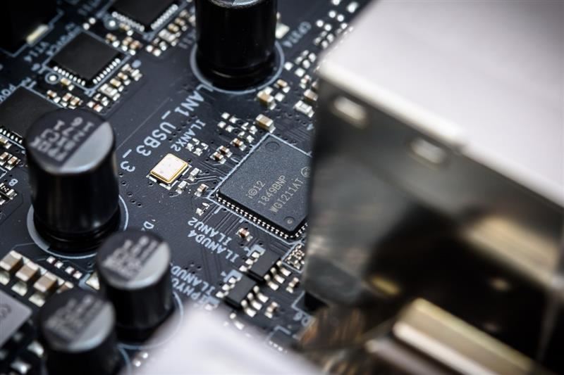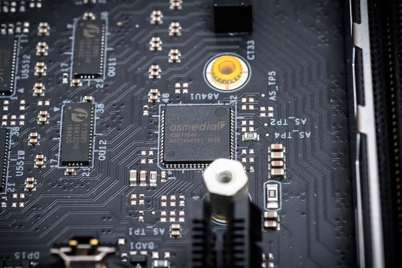由于主板的PCI-E通道消耗量比較大,所以還用到了一顆ASM 1184E芯片,將一條PCI-E拆分為四條,進行額外的擴展。