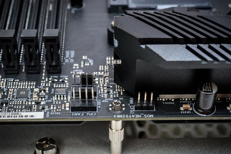 CPU的外接供電為8+4PIN,主要是為了照顧到R9 3900X和R9 3950X。旁邊還有一個SYS FAN插座。
