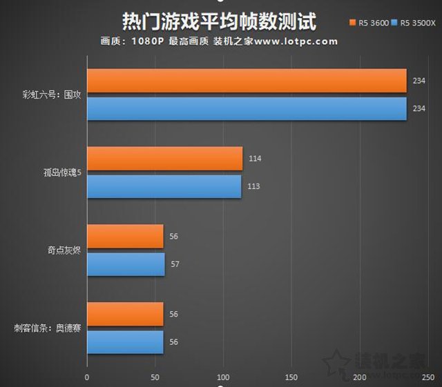 在四款游戲測試中,R5 3500X和3600測試結(jié)果基本相差極小,幀數(shù)十分接近。