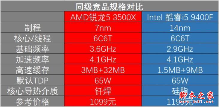 為什么AMD會忽然出這么一個處理器呢,那還得從他的對手產品線看起,現在Intel的酷睿i9與酷睿i7的產品數量相對較少,所以AMD現在手頭上的銳龍9和銳龍7都能好好的對應對手的每款產品,然而酷睿i5的數量就有點多了,而且囊括了1000到1800元的市場區間,現在AMD手頭上的第三代銳龍5處理器只有兩款,雖然說他們的定位可以很好的對應酷睿i5-9400到酷睿i5-9600K這些產品,然而對手賣得最好的其實是千元級的酷睿i5-9400F,在這個價位AMD的產品是銳龍5 3400G與上代的銳龍5 2600X,銳龍5 3400G是一個APU,市場定位于沒核顯的酷睿i5-9400F完全不同,銳龍5 2600X雖然說性能上不輸對手,然而它畢竟是上代產品,早晚會停產,并不是長久之計,因此催生了這顆銳龍5 3500X。