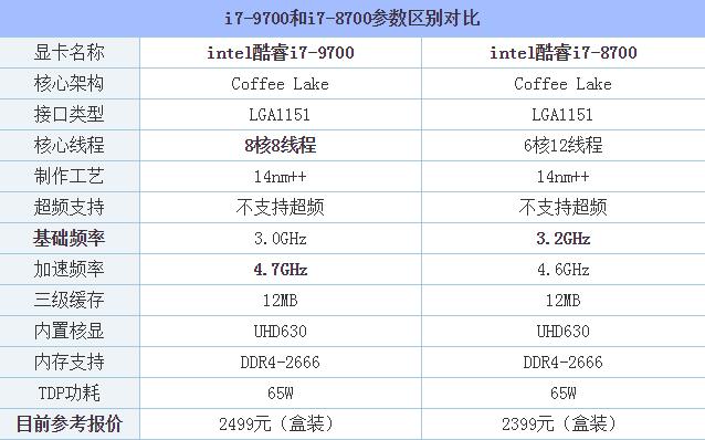 一、i7-9700和i7-8700區別對比