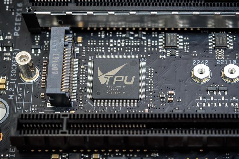 主板的TPU芯片型號為ACB180410,可以幫助實現更好的CPU超頻效果。