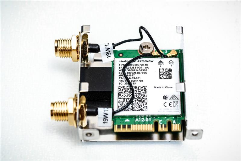 無線網卡則是Intel的AX200NGW,支持 Wi-Fi 6/802.11ax,帶寬可以達到2.4G,是目前Intel網卡中較為高端的。