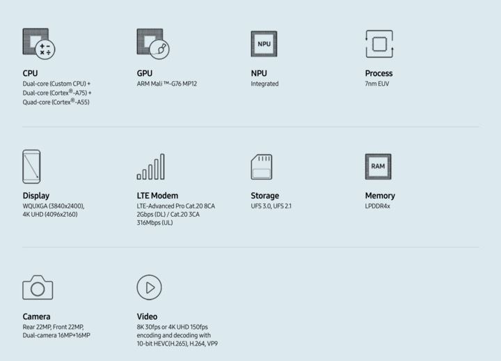 除了核心上的加強,Exynos 9825支持的相機規格也有不小的提升。據POPPUR了解,Exynos 9825支持前后2200單像素的單攝像頭組合,或者1600萬+1600萬像素雙攝像頭的組合,最高可支持錄制8K 30FPS 或 4K 150FPS視頻。目前主流的旗艦手機均只支持錄制4K 60FPS視頻,而8K視頻則仍沒有手機能實現。有了Exynos 9825的加持,三星Note 10將會是首款支持8K視頻錄制的智能手機。