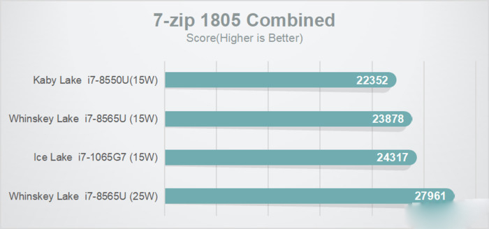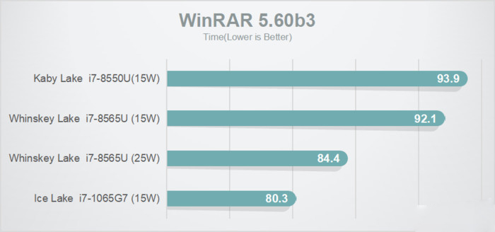 在7-zip 1805 Combined與WinRAR 5.60b3的解壓測試中,10代酷睿也有輕微的優勢,提升約有2%-4%
