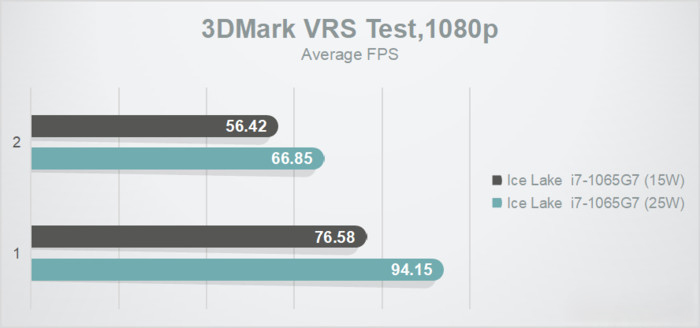 十代酷睿還首次支持VRS可變著色速率,效果與NVIDIA G-Sync、AMD FreeSync類似,3DMark VRS測試可提升36-40%,25W模式下提升更明顯。