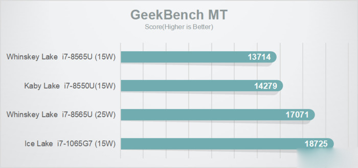 GeekBench單線程提升20%、多線程提升14%,但這個項目其實不適合跑x86處理器,8565U還跑不過8550U呢,看看就好。