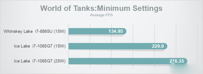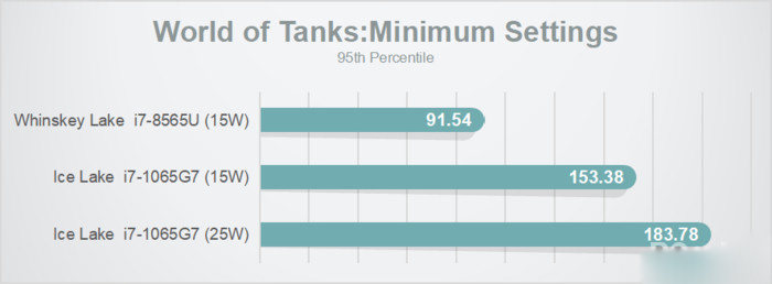 最低特效的《坦克世界》,15W下提升了20%,開放到25W其表現更是出色。