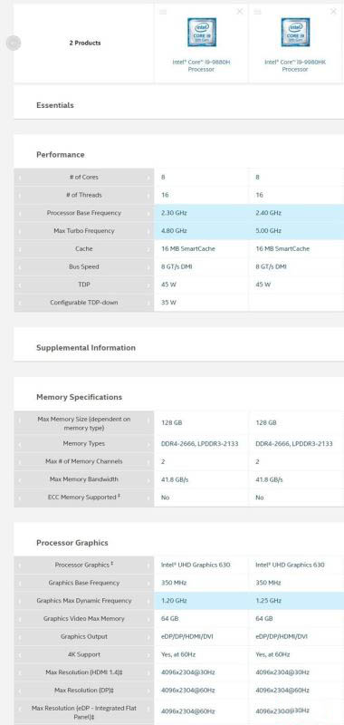 英特爾第九代酷睿i9家族兩顆移動(dòng)級(jí)處理器對(duì)比