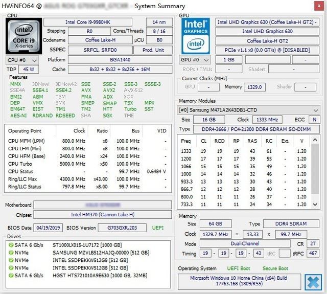 英特爾酷睿i9 9980HK處理器基本信息
