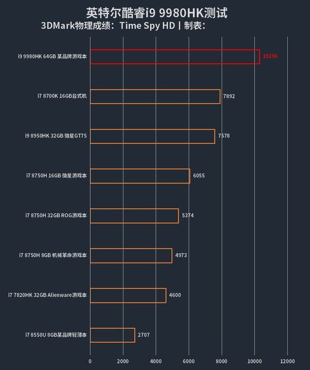 英特爾酷睿i9 9980HK之所以被稱為目前最強(qiáng)的移動(dòng)級(jí)游戲處理器,正是因?yàn)樗瑫r(shí)具備了高主頻和多核心。在3DMark Time Spy模式下,處理器評(píng)分達(dá)到10296分,相對(duì)于第八代酷睿i7 8700K高端桌面級(jí)處理器的7892分、以及上一代酷睿i9 8950HK處理器的7578分超出2000多分,足見酷睿i9 9980HK處理器的性能提升幅度有多大。