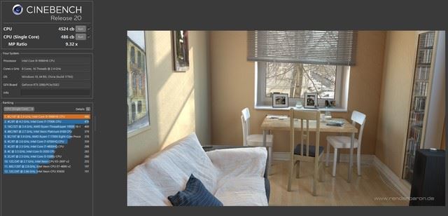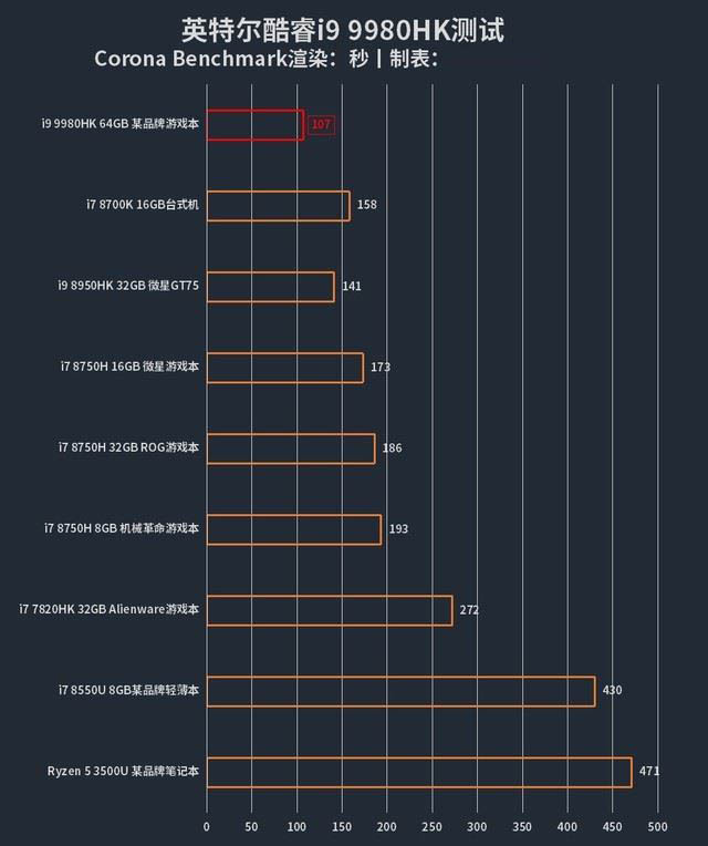 我們看到,如果使用2年前的英特爾酷睿i7 8550U處理器來(lái)做渲染測(cè)試,需要花費(fèi)430秒的時(shí)間才能夠完成。而如今我們使用酷睿i9 9980HK處理器,只需要107秒即可完成同樣的渲染工作。即便是相對(duì)于上一代酷睿i9 8950HK來(lái)說(shuō)也足足縮短了34秒。要知道,在渲染任務(wù)上,一段低負(fù)載渲染任務(wù)提升34秒,也就意味著在更高負(fù)載任務(wù)中,能夠縮減數(shù)十分鐘甚至數(shù)個(gè)小時(shí)的時(shí)間。