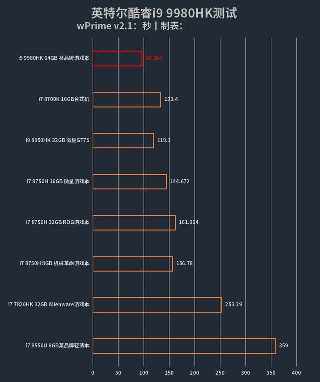 wPrime是常見的處理器多線程計(jì)算能力測(cè)試軟件,它往往能直觀的衡量出處理器的計(jì)算能力。上一代酷睿i9 8950HK處理器在6核12線程下,能夠在119.3秒情況下完成1024MB的數(shù)據(jù)質(zhì)數(shù)計(jì)算。而通過測(cè)試可以看到,英特爾酷睿i9 9980HK是第一顆將wPrime多線程計(jì)算時(shí)間推進(jìn)到百秒以內(nèi)的移動(dòng)級(jí)處理器,其用時(shí)只有96.364秒,足見這顆處理器在基礎(chǔ)計(jì)算能力上的優(yōu)勢(shì)。