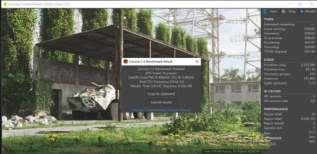 Corona Benchmark測(cè)試結(jié)果