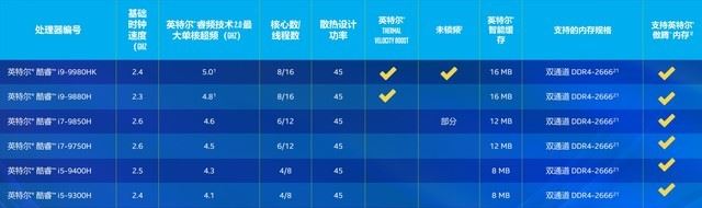 英特爾第九代標(biāo)壓酷睿首發(fā)陣容