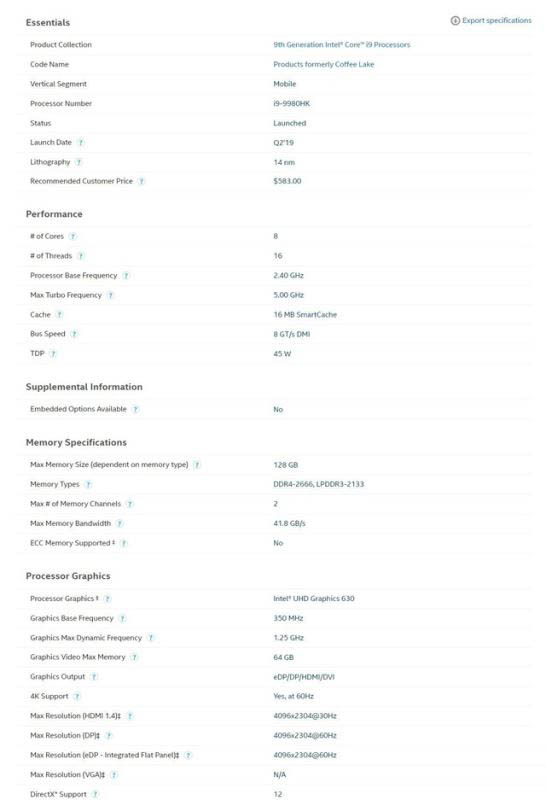 02酷睿i9 9980HK關(guān)鍵指標(biāo)