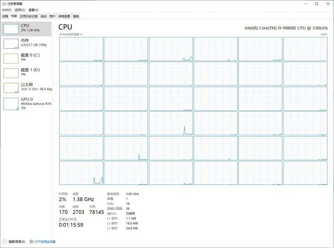 就算一時半會用不上這么多核心,光是任務管理器的邏輯處理器方框也足以讓人熱血沸騰。