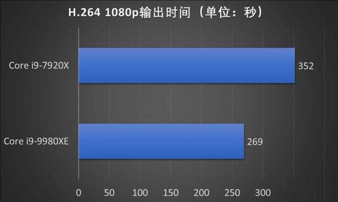 高清視頻本身仍然需要兼容現有的網絡環境,輸出一套兼容優酷的H.264視頻文件也很耗費時間。例如,一個時長為5分鐘的8K原片,酷睿i9-7920X輸出時間花費為5分52秒,酷睿i9-9980XE只需要4分29秒。