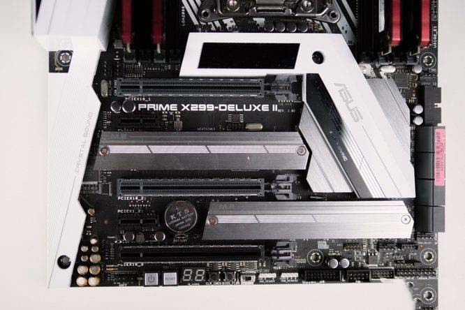 除了華碩高端主板常見的Q-CODE LED之外,ASUS PRIME X299-DELUXE II的LiveDash OLED屏幕面積也有所增大,用來循環播放自檢、乃至個性化信息。