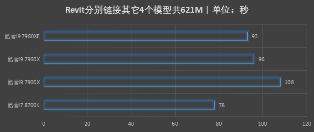 探明Revit與處理器主頻和核心數(shù)之間的關系之后,接下來我們重新搭建了五個新測試環(huán)境以探索內(nèi)存、硬盤對Revit應用的影響,以及各類硬件之間在Revit應用過程中的性能權重關系。新平臺分別包括酷睿i7 8700K、酷睿i7 7800X、酷睿i7 7740X三顆新處理器,以及酷睿i7 5775C、酷睿i7 5820K兩顆老處理器。