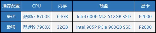 另外如果給Revit用戶或建筑行業(yè)用戶推薦配置的話,可以參考下表所示配置: