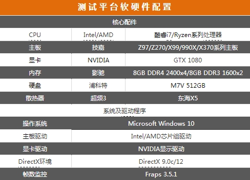 首選來了解一下本次參與對比測試的幾款產品,AMD陣營包括了全部的三款Ryzen系列新品,而Intel陣營則包括兩款熱門酷睿i7系列產品及三款至尊版i7產品。其中Intel酷睿i7-6700K采用四核八線程設計,主頻4.0GHz-4.2GHz,目前盒裝版報價2649元,作為曾經我們最熟悉的產品,可以作為本次測試的參照物。關于其余產品的詳細信息,可以參考下面的表格: