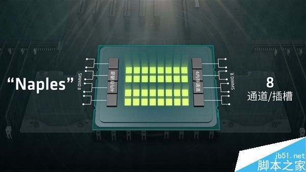 Naples還支持八通道DDR4內存,最多可搭配16條內存,最大容量2TB,雙路可以支持32條、4TB。