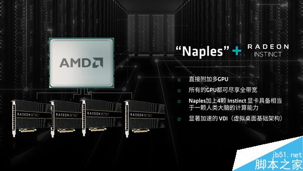 未來,Naples可以搭配自家的Radeon Instinct,執行各種高性能計算任務,支持高速VDI(虛擬桌面基礎架構)。