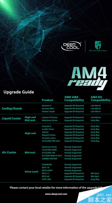 其他各款高中低端風(fēng)冷散熱器、水冷散熱器、機(jī)箱也都將升級支持AM4,相應(yīng)套件會在3月底到5月初陸續(xù)提供。
