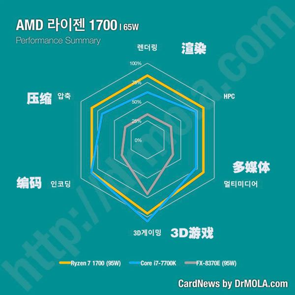 每家媒體的評測文章都是面向所有讀者群體的,有高中也有小白,普通玩家要想從從海量的測試數據中找到對自己最有幫助的內容不容易,這也是我們做評測的人該反思的。韓國DrMola網站的Ryzen處理器評測做的很不錯,他家的圖表做的很漂亮,而且非常直觀(就是語言障礙是個坎),值得學習。