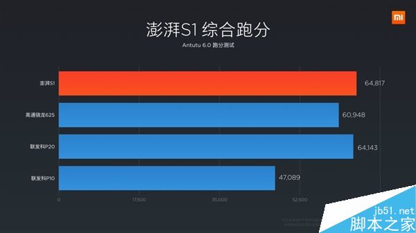 大家一定最關(guān)心S1的性能,從小米官方幻燈片曬出的成績看(綜合跑分),澎湃S1的性能超越了高通驍龍625和聯(lián)發(fā)科P20,這樣的成績還是挺讓人吃驚的,畢竟小米是這個(gè)領(lǐng)域的新兵,第一次出手就這么狠,后續(xù)我們可以看看澎湃S1的實(shí)際表現(xiàn)。