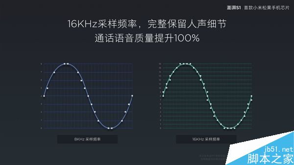 跟之前傳聞的一樣,澎湃S1是一款64位八核處理器(大小核架構(gòu)、4×A53大核+4×A53小核),最高主頻2.2GHz,內(nèi)置的GPU為MaliT860 MP4,提供32位語音DSP,支持VoLTE(號(hào)稱通話語音質(zhì)量提升100%)。
