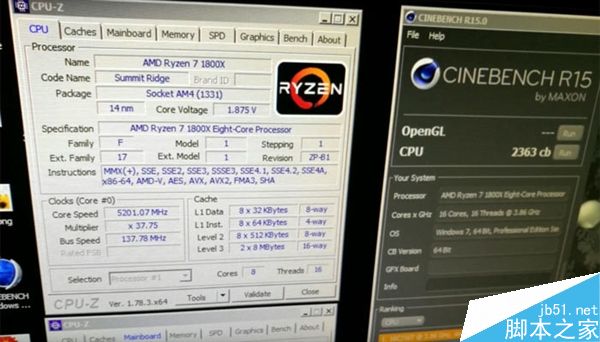 最終,超頻后的Ryzen 7-1800X在Cinebench R15當中的跑分成績為2363分,低于此前創下的2449分紀錄。