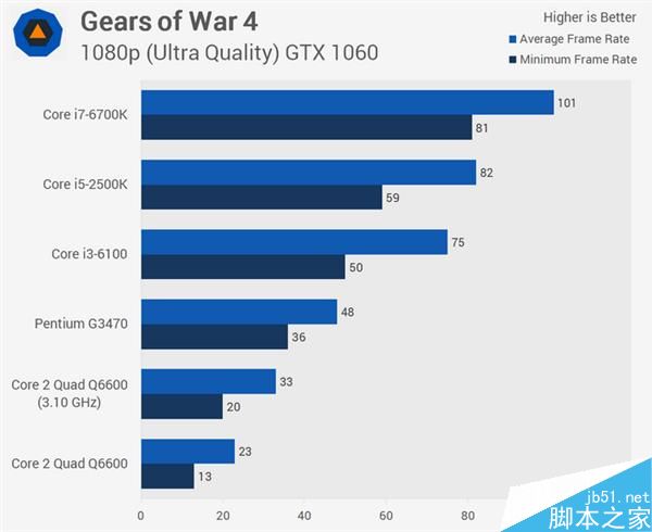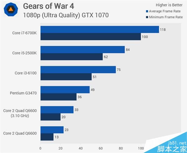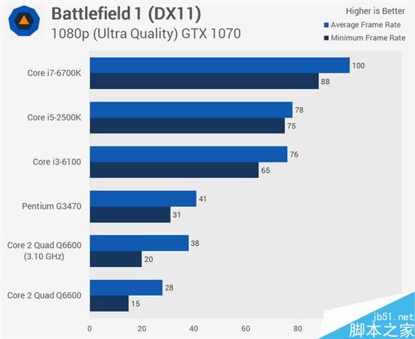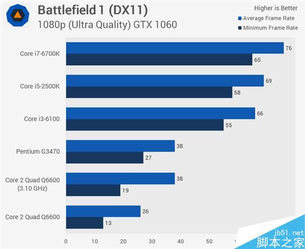 圖中可以看到差距的明顯,即使是對CPU基準不那么敏感的游戲上,Q6600也只有奔騰G3470的一半,遑論i7/i5了。