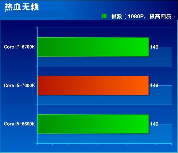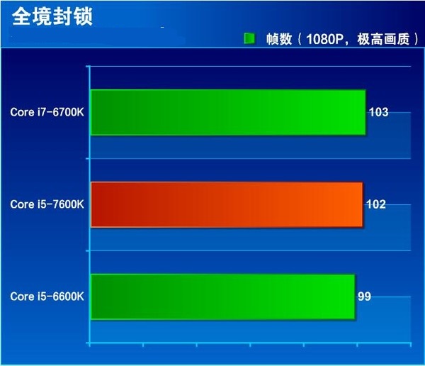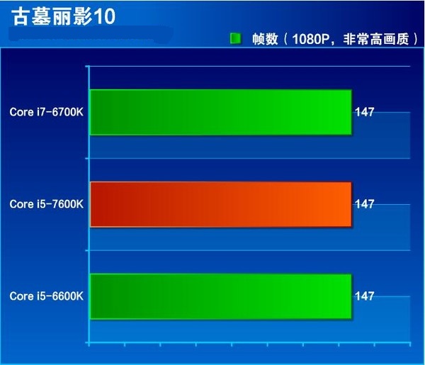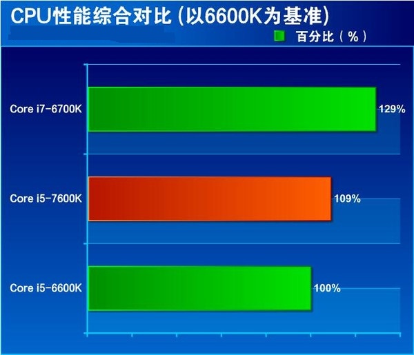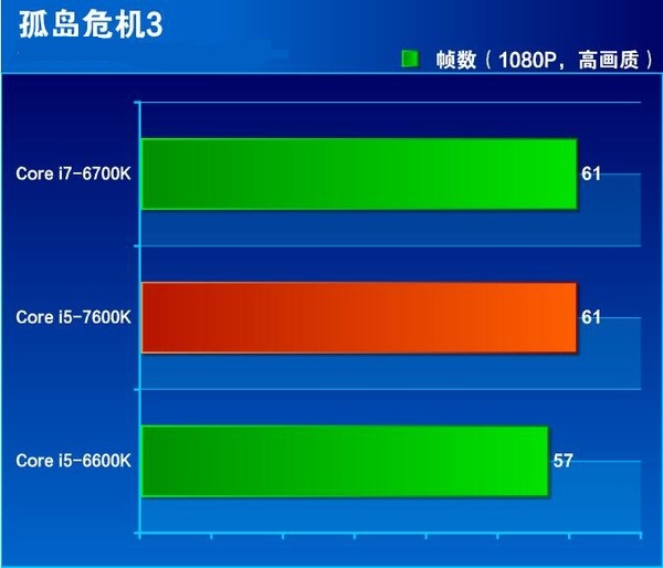 單純地對CPU性能進行對比,i5-7600K對比i5-6600K只有小幅度的提升,核心架構不變,整體效能基本相同,更多的是頻率的高低體現差異。因此后面我們加入了兩代的i5同頻情況下比較。