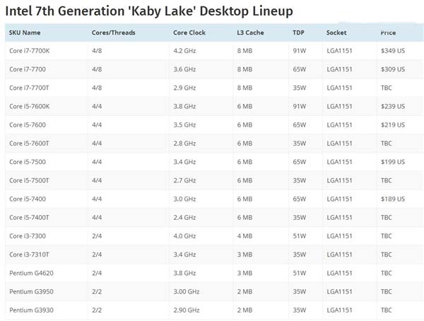 技嘉、華擎、華碩等主板商已經陸續向100系主板分發新BIOS,使后者得以支持全新的第七代酷睿處理器,代號Kaby Lake,這都說明,桌面7系的i7/i5/i3/奔騰/賽揚越來越近了。