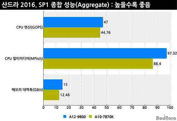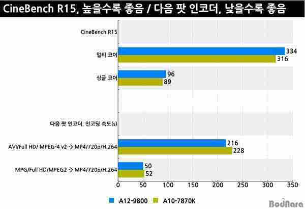 下面附上轉(zhuǎn)載自韓國的關(guān)于新旗艦APU A12-9800對比代號Godavari(Kaveri的馬甲)旗艦A10-7870K的對比測試。
