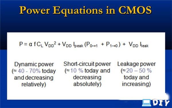 簡單來說,CMOS電路的功耗可以分為動態(tài)功耗及靜態(tài)供電,靜態(tài)功耗(Static Power)主要是漏電流引起的,這部分功耗是無用功耗,會變成廢熱,但現(xiàn)有技術(shù)又無法杜絕漏電流,而且它所占的功耗比例有越來越高的趨勢。
