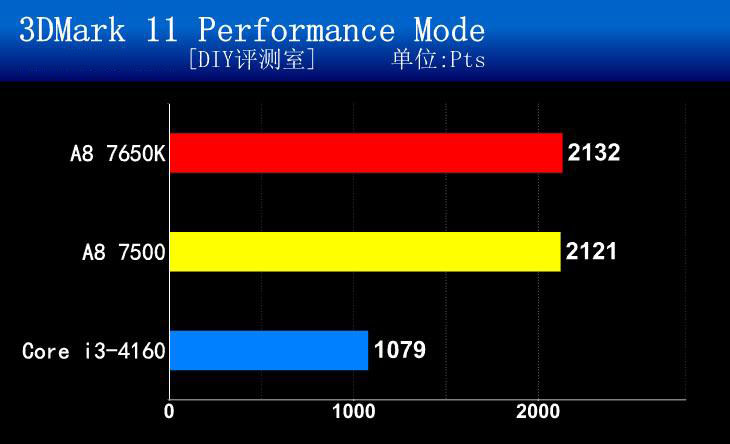從基礎(chǔ)性能測試來看,像是在wPrime這類的科學(xué)運算上可以做到小勝Intel酷睿i3。在考驗圖形性能的3D Mark理論測試中,A8 7500是全面勝出。