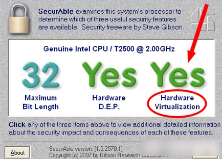 一、首先要看看自己的電腦CPU是否支持虛擬化技術,這里推薦大家使用一款名為“securable工具”查看,這里提供【本站下載地址(105k)】。下載后打開securable工具,之后會開始檢測電腦CPU是否支持虛擬化。如果“Hard Virtualization”下面是YES那么就支持(如圖)。
