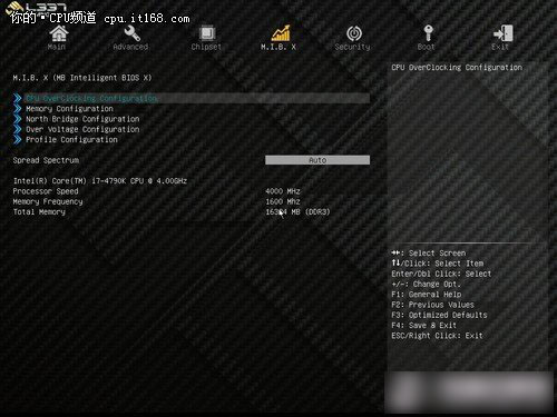 在更新最新BIOS后,進(jìn)入BIOS我們還是沒(méi)有發(fā)現(xiàn)像其他品牌的主板已經(jīng)存在對(duì)應(yīng)i7-4790K的超頻預(yù)設(shè)方案,那就只好手動(dòng)進(jìn)行超頻,我們的目標(biāo)先設(shè)定在4.7GHz。