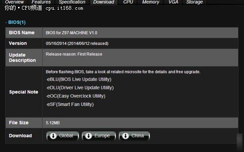 我們首先進(jìn)入精英主板官網(wǎng)找到最新的BIOS進(jìn)行更新,以便更好的匹配i7-4790K的超頻。