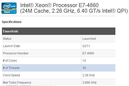 以查詢E7-4860 CPU為例。訪問intel官方信息網站http://ark.intel.com/zh-cn