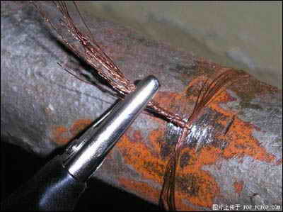 這里除了要求電烙鐵頭部一定要尖外,還須注意烙鐵頭是否沾錫,使用時要保持尖部也有均勻的一層焊錫。在一般地攤上10元左右的電烙鐵所用材料比較差,很難在頭部上錫。解決的辦法可以找直徑3~4mm以上的銅絲磨尖替換掉原來的烙鐵頭。