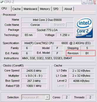 CPU-Z中的“Revision”對應的值就是這款處理器的核心步進
