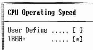 進入該功能后,我們可以看到系統自動識別CPU為1800 。我們要在此處回車,將默認識別的型號改為User Define(手動設定)模式(圖4)。