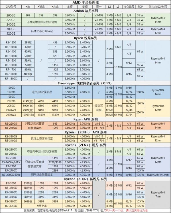AMD會在7月7日上市下一代7nm銳龍2處理器,有興趣的朋友可以予以觀望,全新的銳龍2不僅制造工藝更先進,而且ipc(指令集執行效率)提升了15%,再加上頻率進一步走高,R7-3700X/3800X完全可以叫板i9-9900K。更高端的R9-3900X采用12核心24線程設計,性能上已經略強于i9-9920X。目前主流的B450平臺可以通過BIOS更新來支持下一代處理器。至于價格嘛,前期上市性價比肯定不算高,調價的空間也會很大,建議先等幾個月,目前來說入手二代銳龍才會是最合適的,畢竟目前R7套裝也早已跌破2000,R5套裝直逼千元大關。