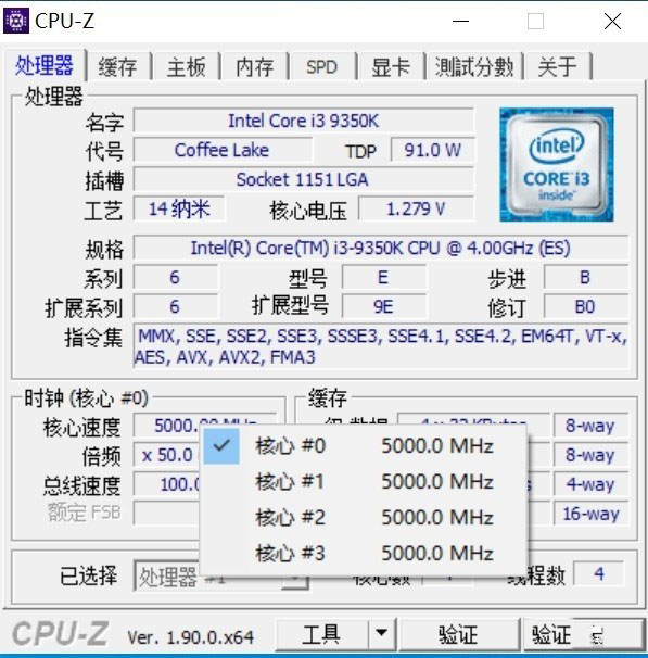 我們前面提到過酷睿i3處理器普遍擁有超低的功耗,在酷睿i3-9350K的表現中就變成了超頻的利器,因為功耗低就意味著發熱少,而且只有4顆核心其超頻能力可見一斑。